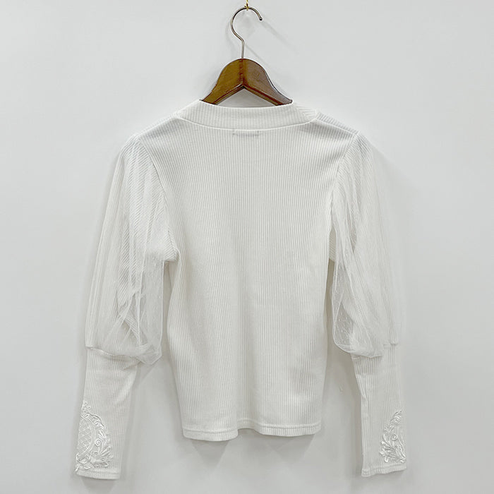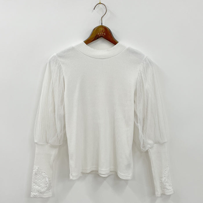 チュールやレースで飾った袖がポイントのプルオーバーです。