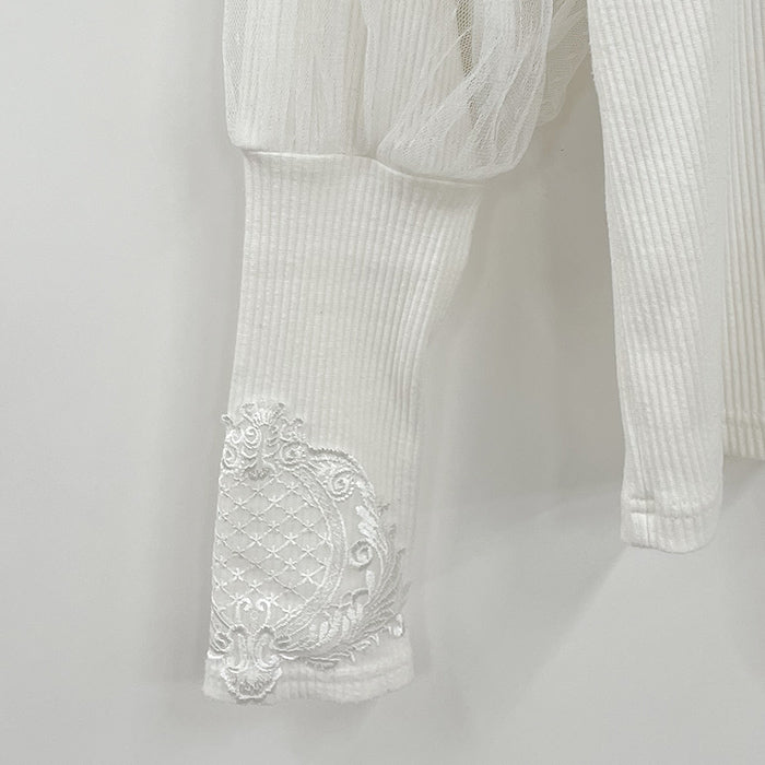 袖口にあしらったモチーフレースが手元を華やかに見せてくれます。