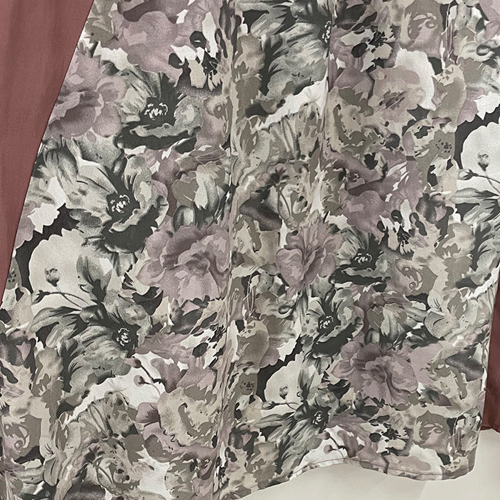 大き目の華やかな花柄と無地生地を掛け合わせたスカートです。