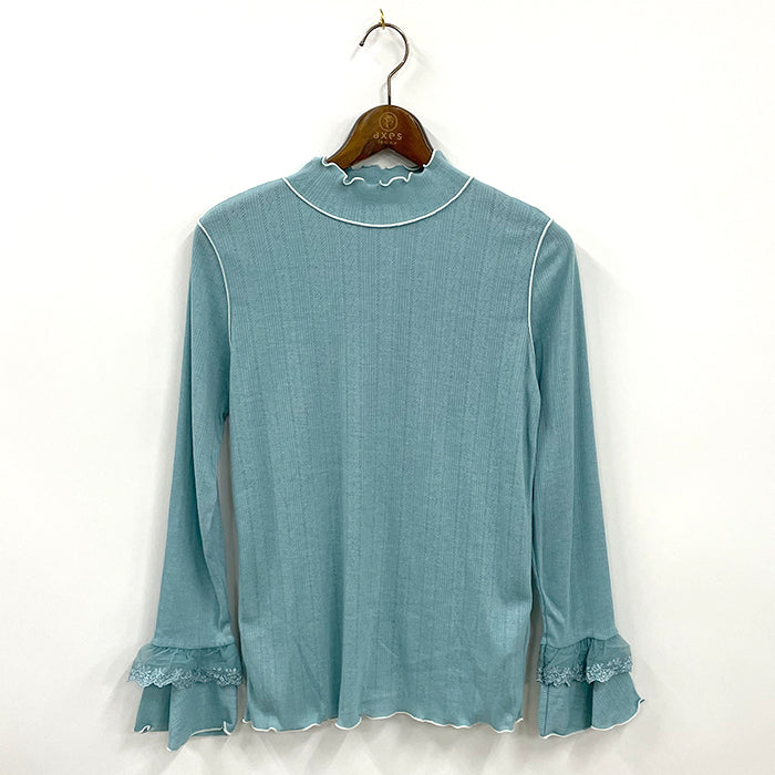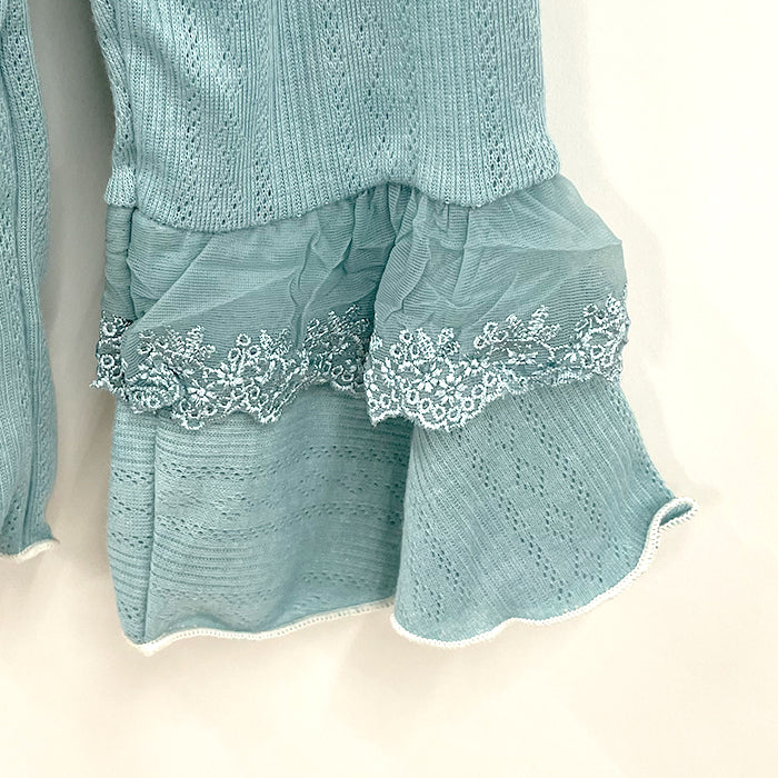 袖口にあしらったレースとフリルが華やかなアクセントに。