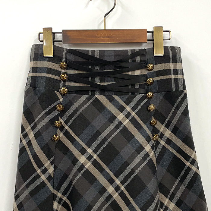 秋らしいチェック柄に、クラシカルな連ボタン・レースアップデザインがポイント。