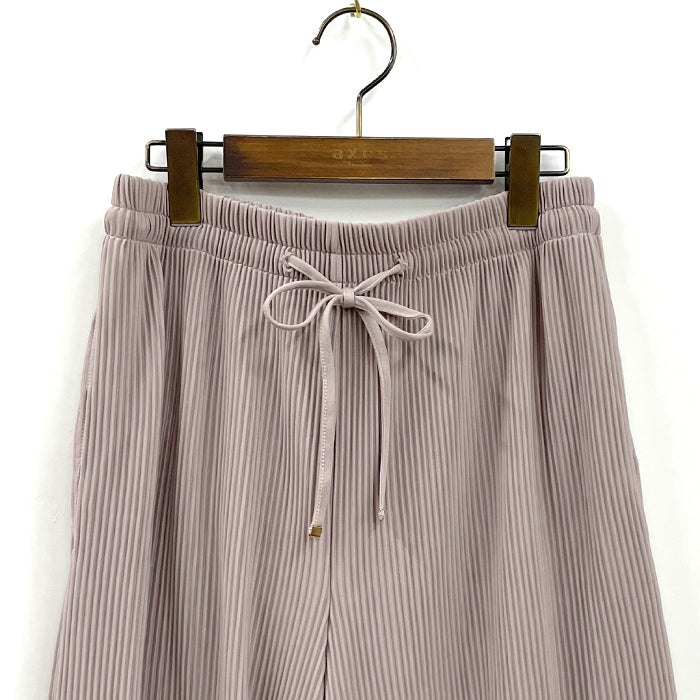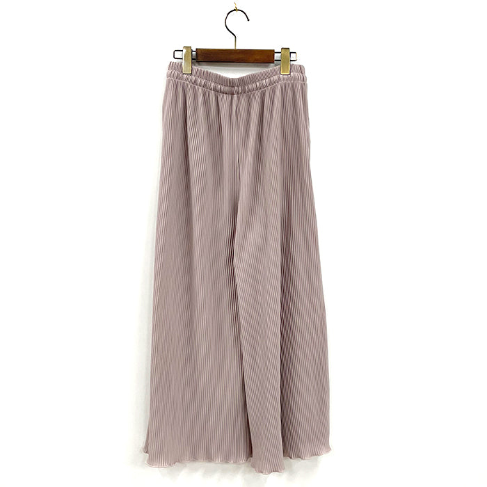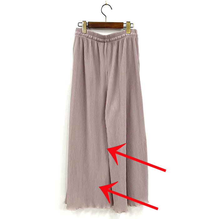 細かなプリーツがシンプルながらも存在感のあるワイドパンツです。