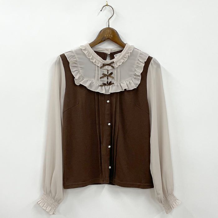 リボン付フリルプルオーバー