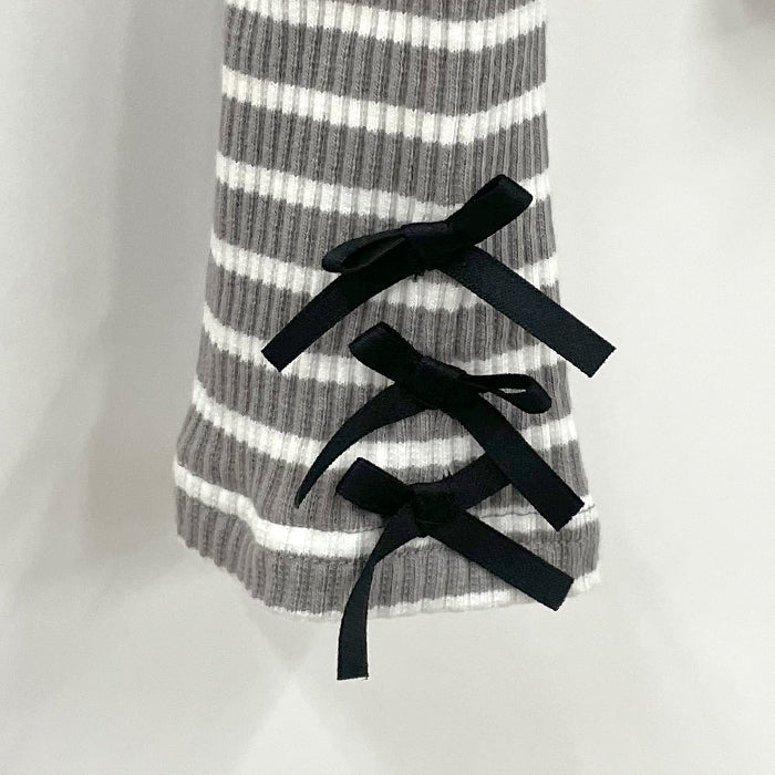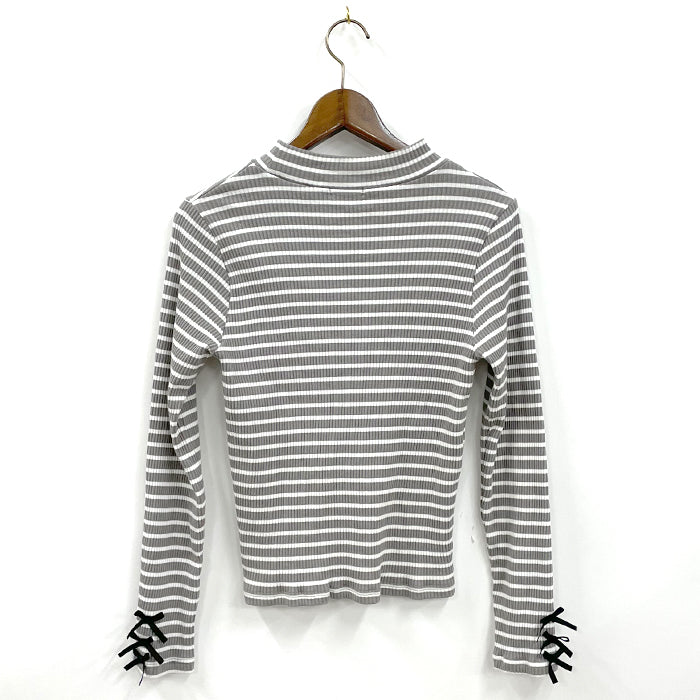 【デザイン】フレア袖には小さめのリボンが3つ縫い付けられたデザインです。胸元にはリボンモチーフの刺繍があしらわれています。