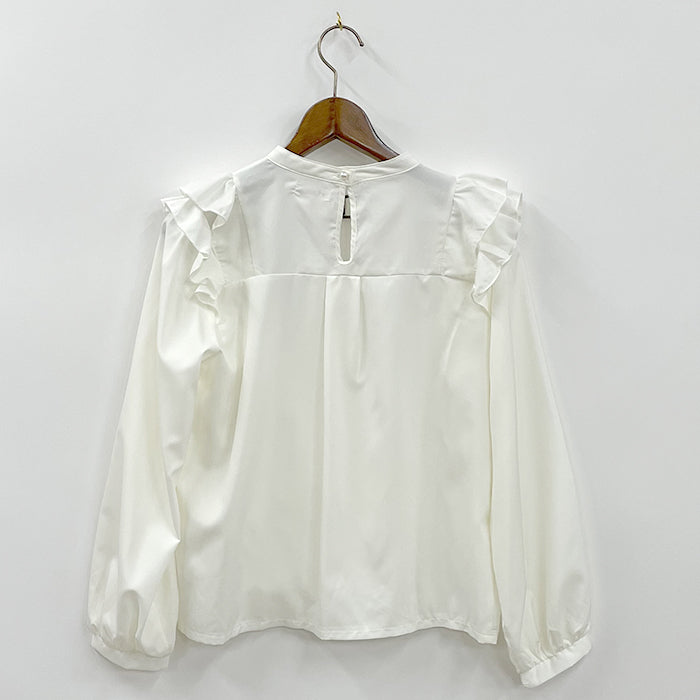 存在感のある肩フリルでほどよい甘さをプラス。