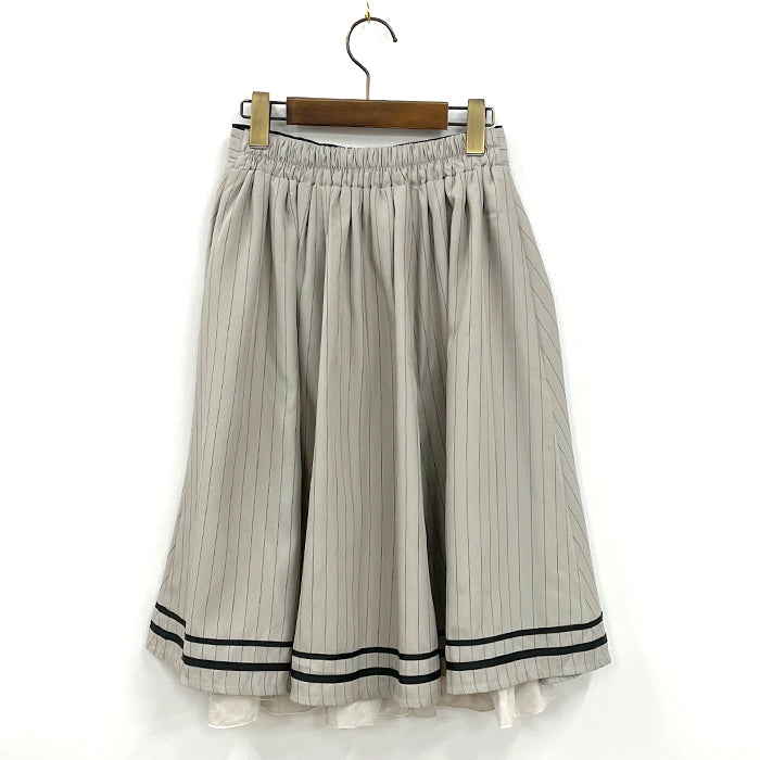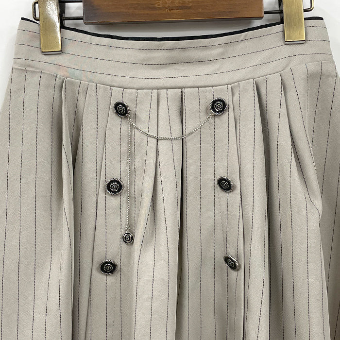 ダブルボタンに取り外しのできるチェーンが付いた、クラシカルなミドル丈スカートです。