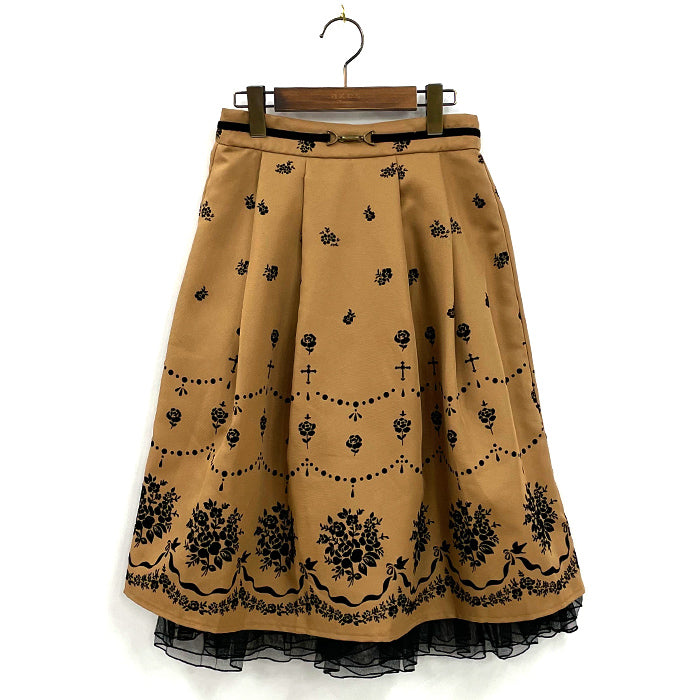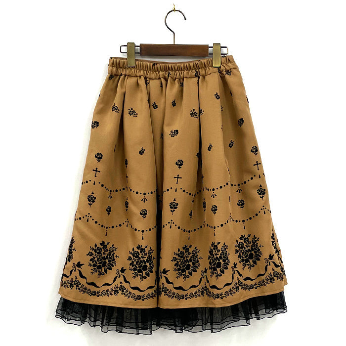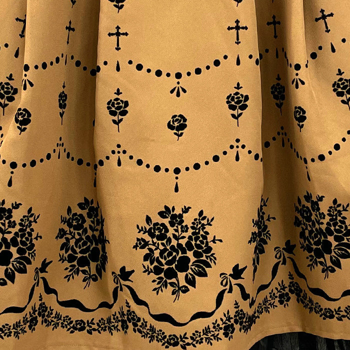 華やかなブーケにスカラップのようなリボンを運ぶハトの柄が可愛らしい、裾のパネルデザインがポイントです。