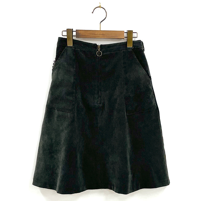 コーデュロイ素材のスカートです。ミドル丈ですっきりとしたシルエットが◎。ブラウスやゆったりめのニットとあわせたスタイリングがおすすめ。大き目のポケットで利便性も◎。