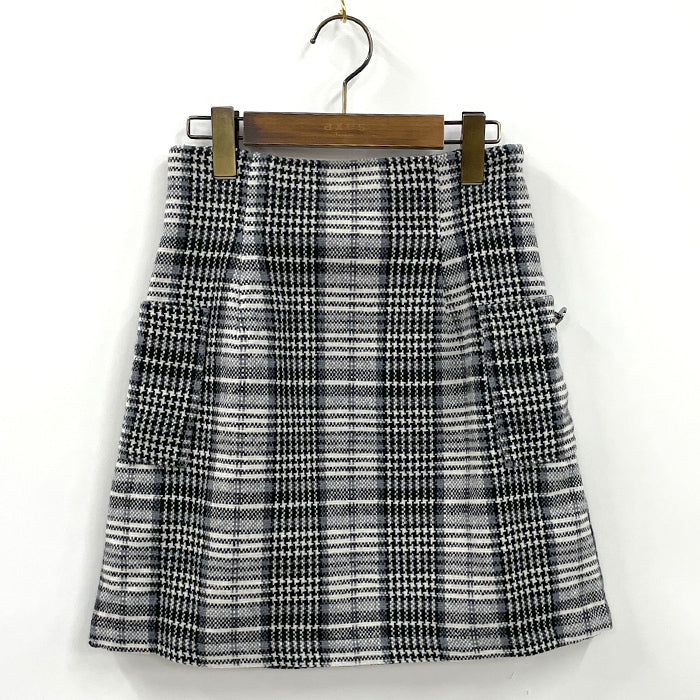 トレンド感のあるロービングチェック柄がフェミニンなミニスカートです。