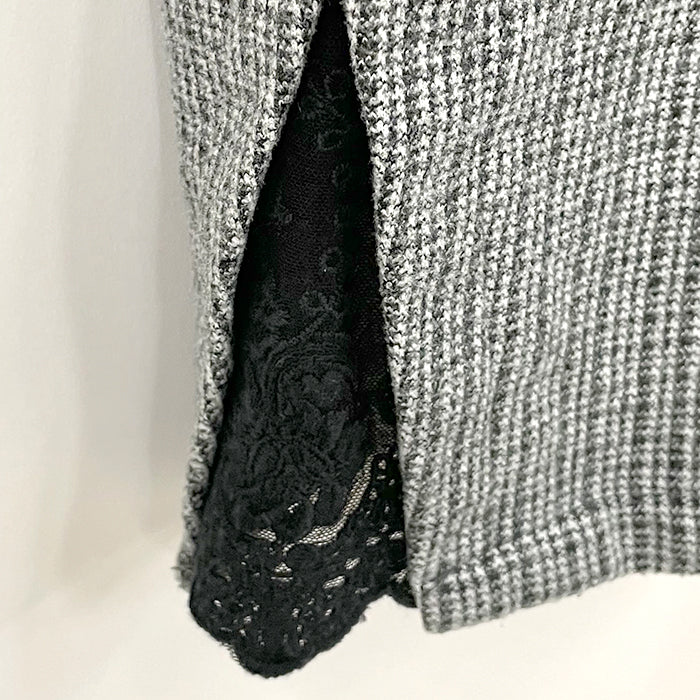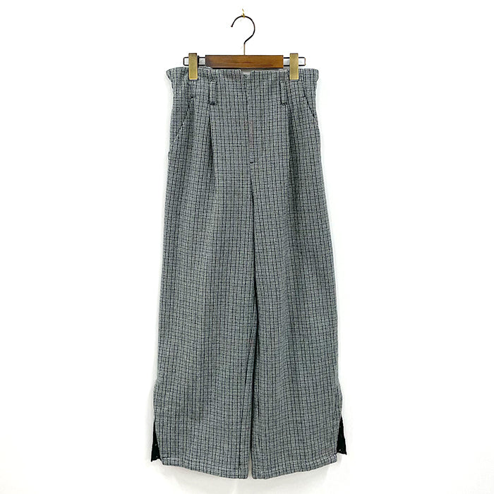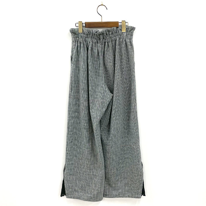 裾のスリットから覗くレースがポイントのニット調のストレートパンツです。裏起毛なので保温性も高く、温かく履けます。ウエストが後ろゴム仕様なので、履きやすいアイテム。チェック柄2色、ヘリンボーン1色の2柄展開なので、シンプルなニットトップスやチュニックなどと合わせるのがオススメです◎