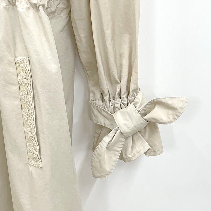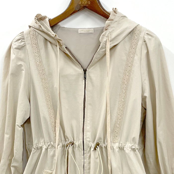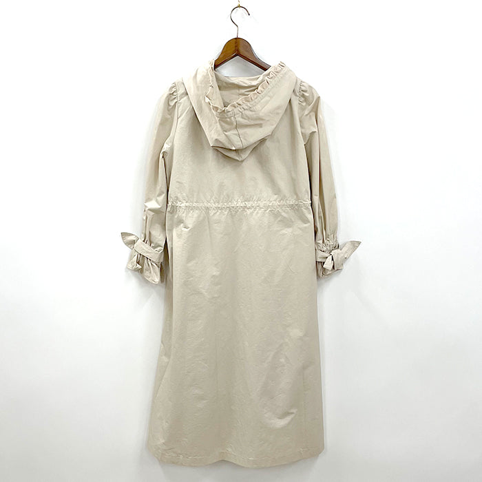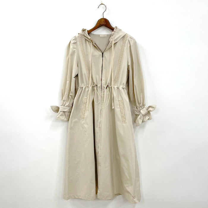 スポーティーな素材が今年らしいガーリーなストリングコート。大きめのフードとフリルがポイントです。ワンピースやミニボトムに合わせてガーリーカジュアルなスタイリングがオススメです。