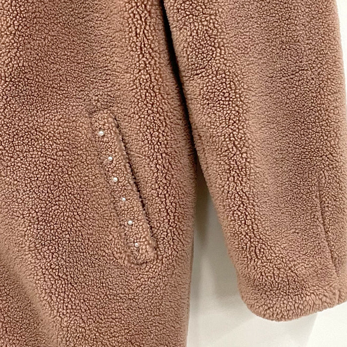 手触りがふわっとしたボアを使用したブルゾンです。ポケットがついていて利便性◎、さりげないパールデザインがaxesfemmeらしいポイント。やや長めの丈で気になるウエスト~ヒップラインをさりげなくカバーします。