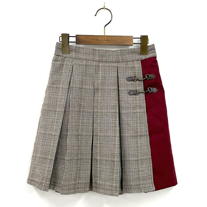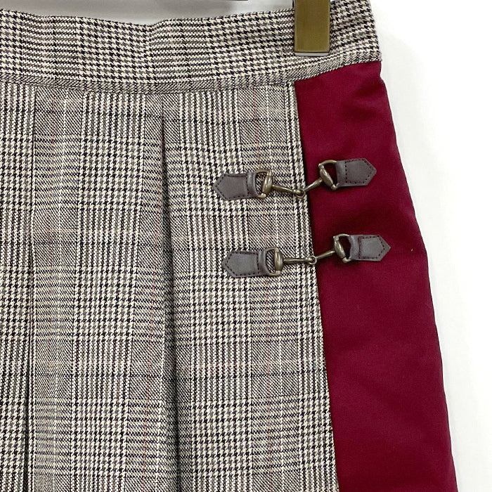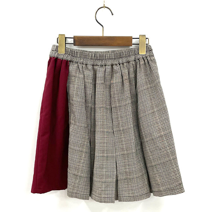 トレンドのビットを使用したキュロットです。今年も人気のボックスプリーツはボリューム感が出過ぎないよう、すっきりしたきれいなシルエットにこだわっています。目を引くチェック2色は無地生地とのバイカラーになっており、無地のコンはすっきりしたピンストライプ生地とのバイカラーでご用意しています。