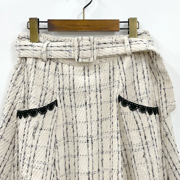 華やかさと高級感のある、ツイード素材のミドルスカートです。