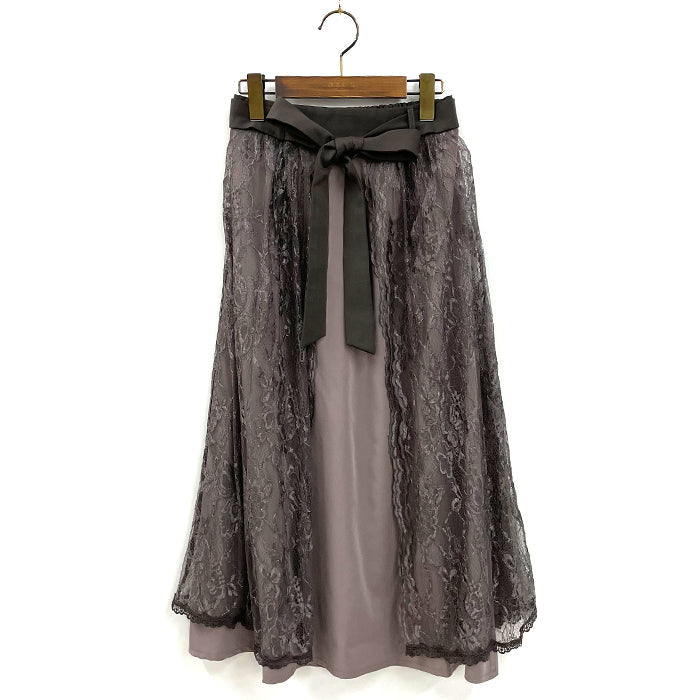 繊細な柄のレース生地を重ねた、バイカラーデザインのロングスカートです。