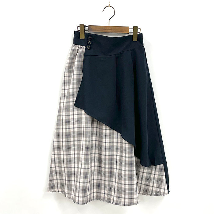 秋らしいチェックスカートにアシンメトリーのオーバースカート風デザインを入れたアイテムです。