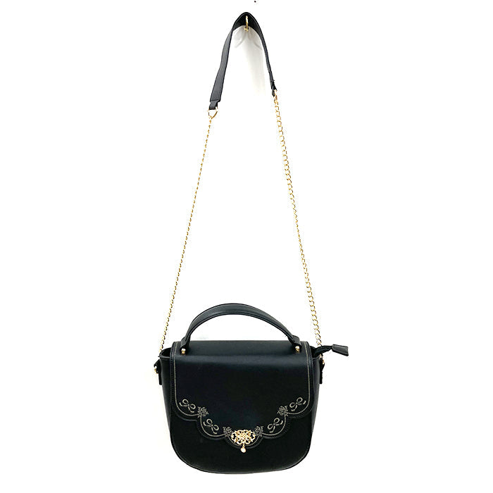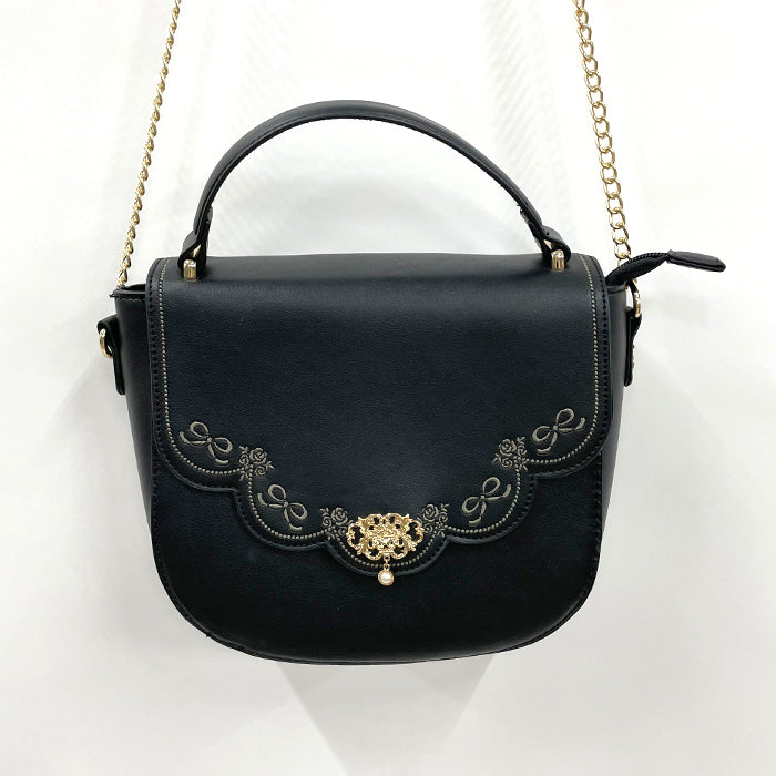 フロントを飾る、パールがきらめくモチーフ金具がポイントです。