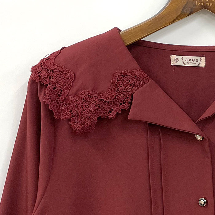 開襟風の襟でそのままはもちろん、レースインナーやネックレスなどアクセサリーを合わせたコーデで華やかに。
