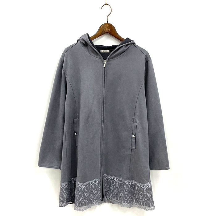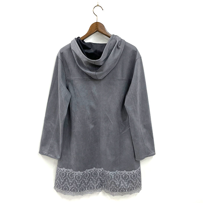 カットスエード素材を使用したミディアム丈のコート。おしりがすっぽりと隠れる丈感が◎、広がり過ぎないシルエットやゆったりとしたサイズ感で着やすく中に着るアイテムを選ばずご着用いただけます。今季はカジュアルダウンしたパンツあわせがおすすめ。春・秋口の涼しくなってきた気候にぴったり♪