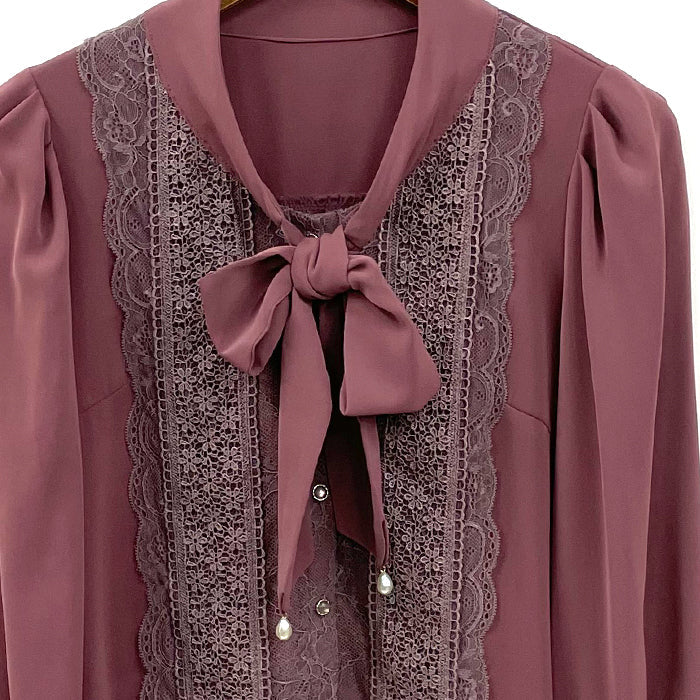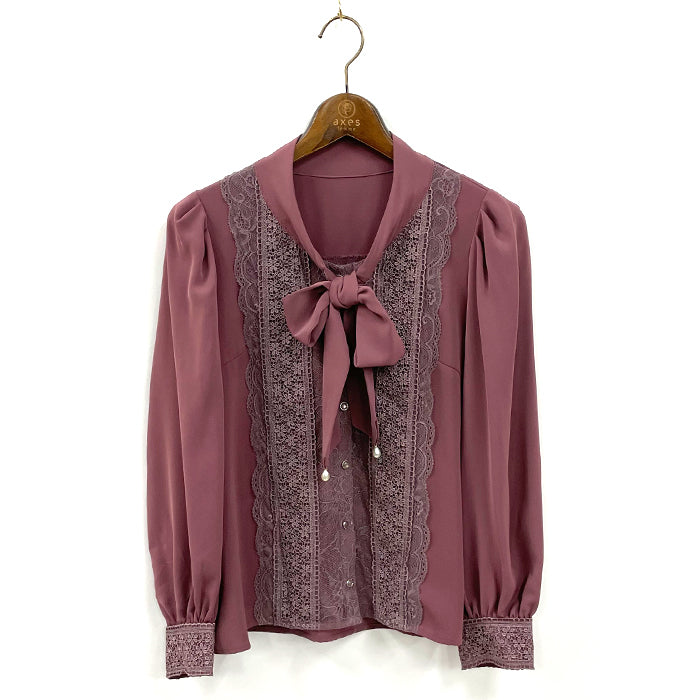 存在感のあるケミカルレースと、繊細なナイロンレースを重ね合わせたデザインのブラウスです。
