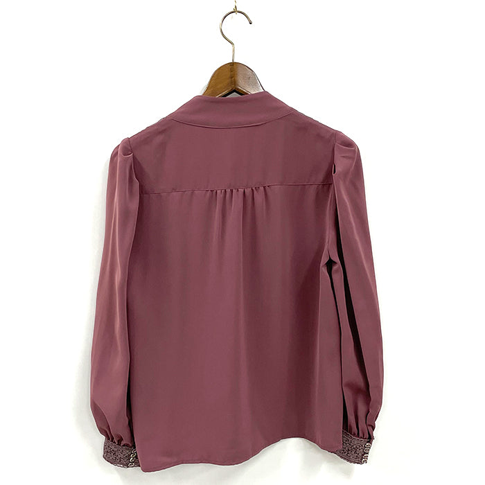 カフスにはレース×光沢感のある釦で上品な印象に。