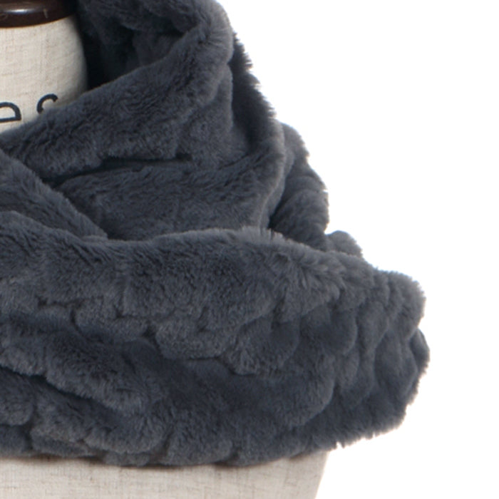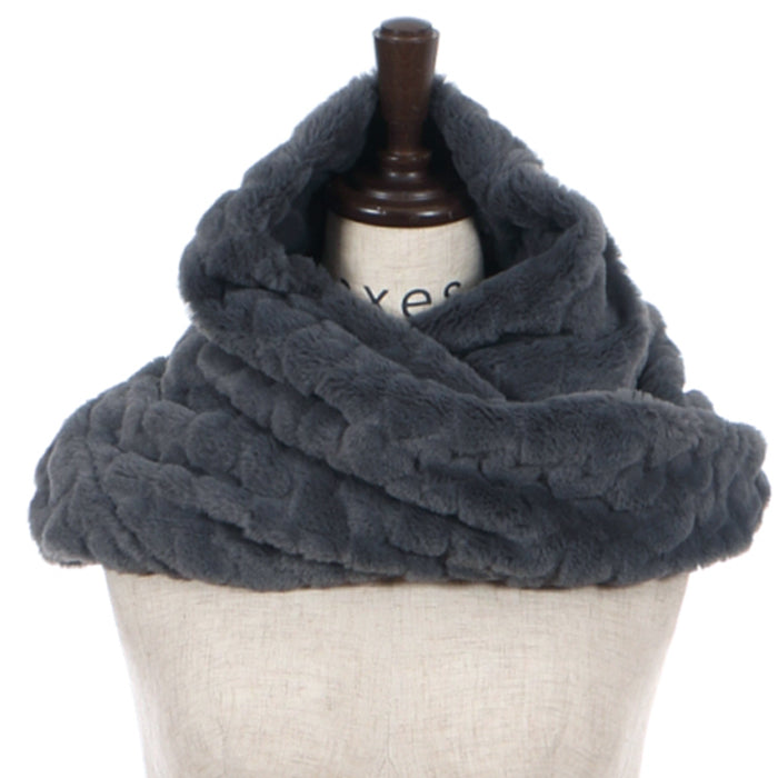 ふわふわの手触りのファーにハート型のエンボスを施した生地を使用したスヌードです。大きすぎず収まりの良いサイズ感が嬉しく、カジュアルスタイルにも馴染むさりげない可愛さのあるアイテムです。