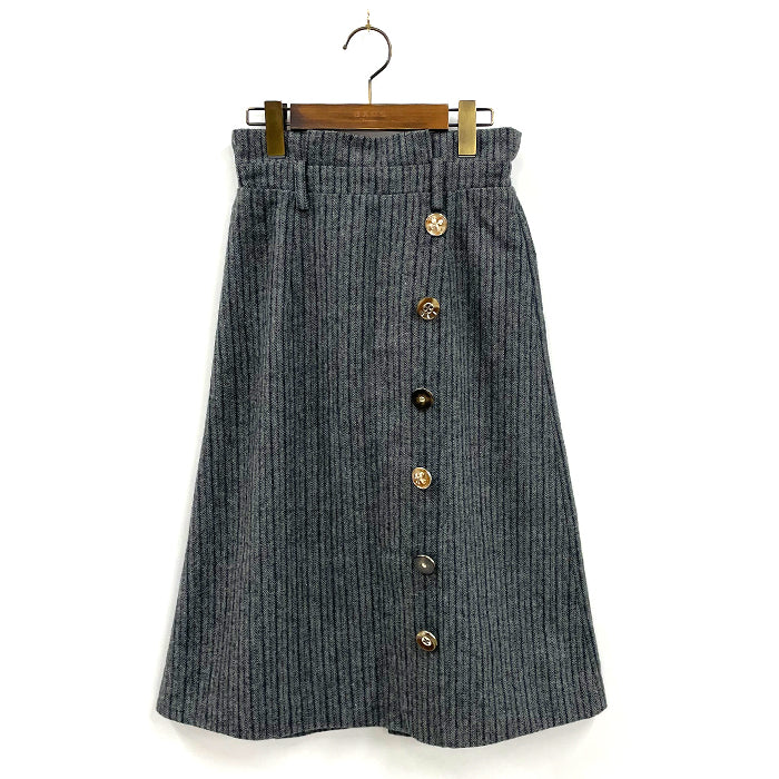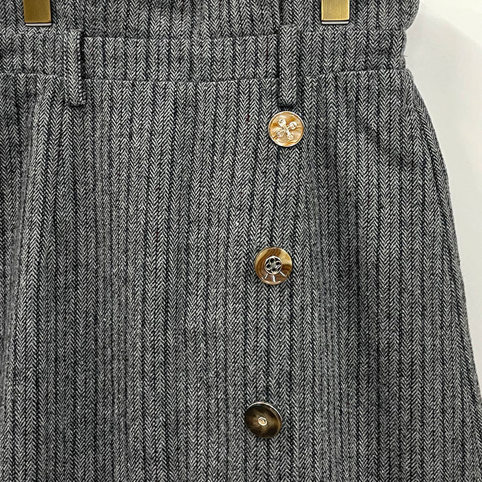 暖かみのあるヘリンボーン生地を使用したスカート。タイトめなデザインですが裾に向かってゆったりしたサイズになっているのでリラックスして着用いただけます。配色使いのベルト、アソート釦がポイントです。
