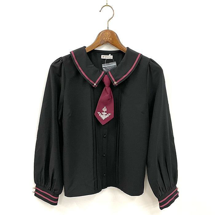 ショートタイにあしらわれた錨刺繍がポイントのブラウス。