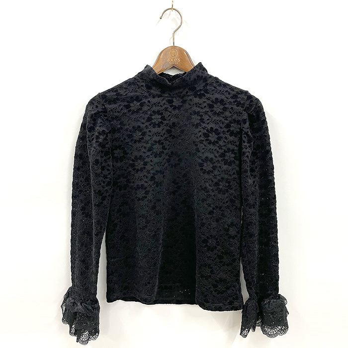 華やかであたたかな雰囲気のある、花柄の起毛レースのトップスです。