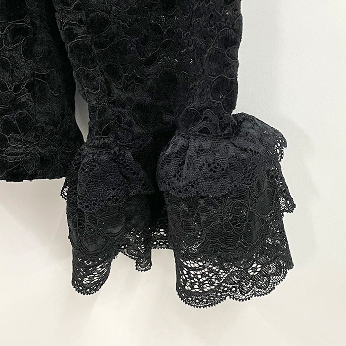 袖口はふわっと広がる三段レース重ねのデザインで、異なるレース柄を使用しています。