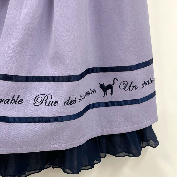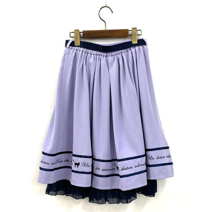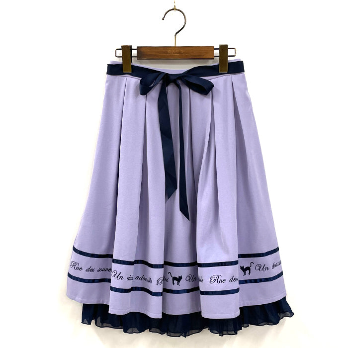 裾にぐるりとメッセージ刺繍を施したクラシックなデザインのスカートです。
