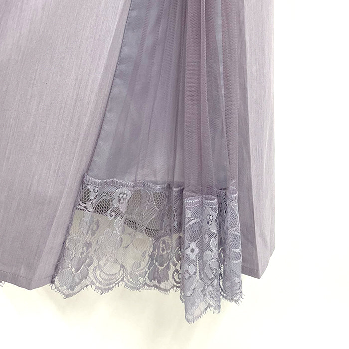 部分的に施されたマチ切替のチュールプリーツが、動く度に上品に広がります。
