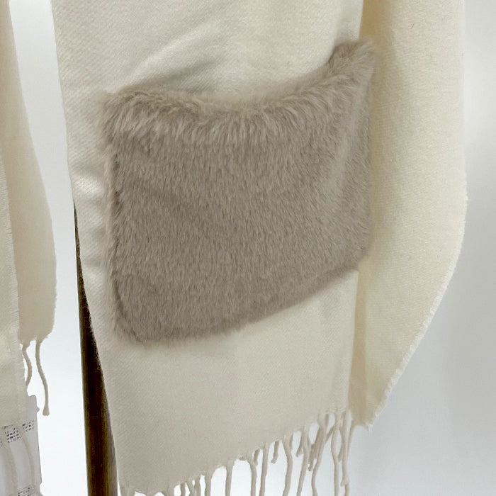 手触りのよい生地にふわふわのファーのポケットが付いたストールです。