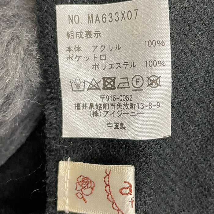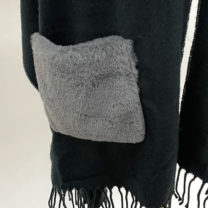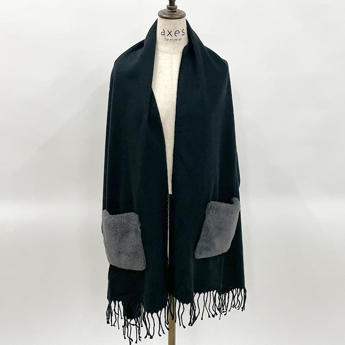 手触りのよい生地にふわふわのファーのポケットが付いたストールです。