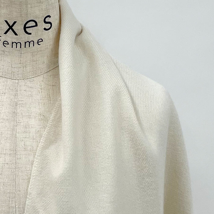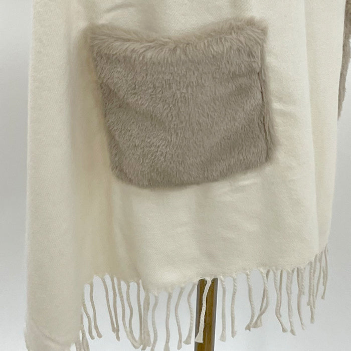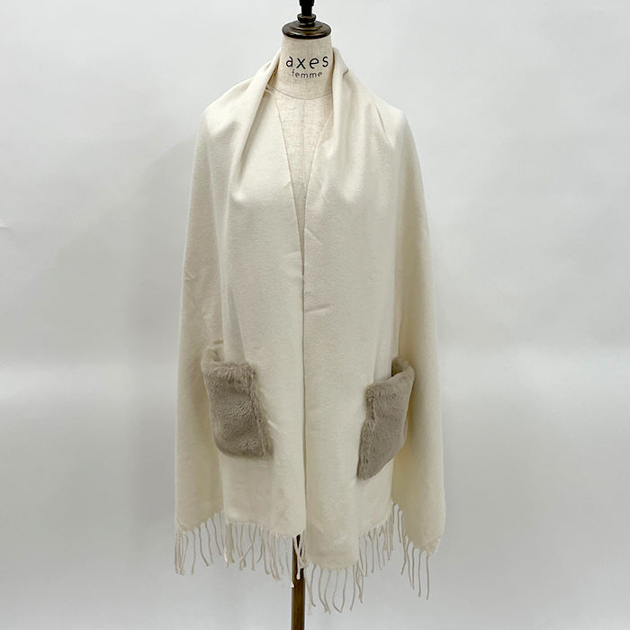 手触りのよい生地にふわふわのファーのポケットが付いたストールです。
