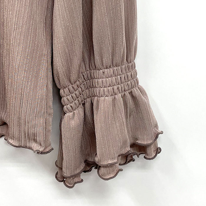 ネックと袖口の配色メローがトレンドライクなシアートップスです。さらっとしてシボ感のある楊柳のシアー素材を使用しているため、軽くてさらっと着られるアイテムです。セットのインナーは肩紐の長さ調節可能です。トップスとして1枚で着ても、ワンピースなどの中にインナーとして着ても◎。着まわしの効く便利な1枚です。