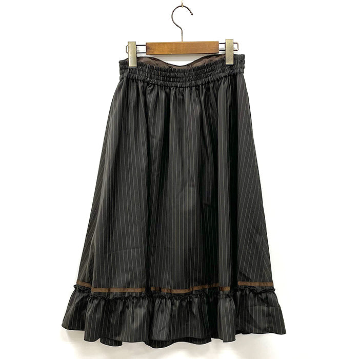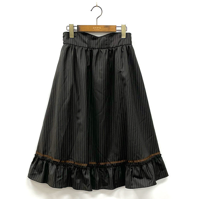 ベストと連動した素材のスカートです。裾は切り替えフリルになっていてクラシカルガーリーなアイテム。ひざが隠れる上品丈、柄連動のベストと合わせるとクラシカルなスタイリングに。