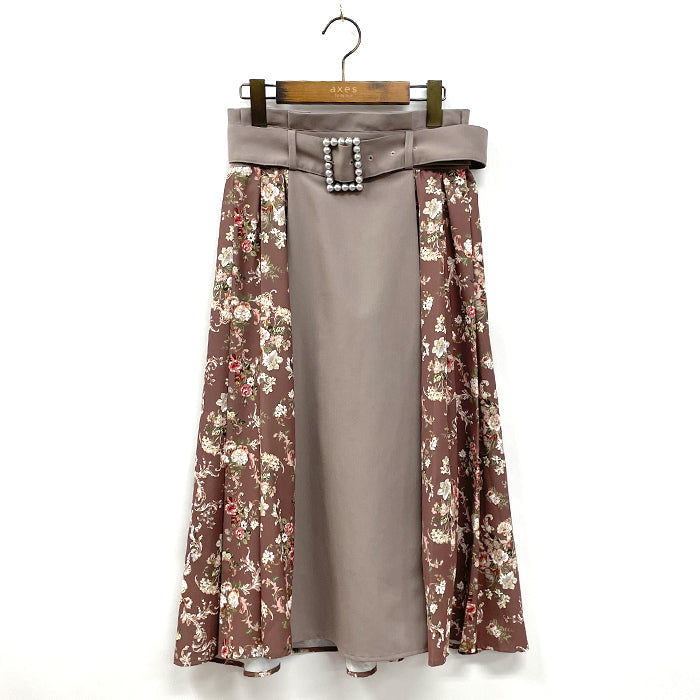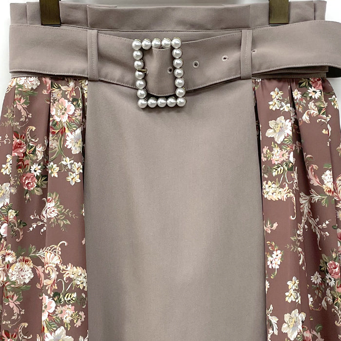 パールがポイントのバックル付きベルトでウエストマークすることでスタイルアップ効果も。