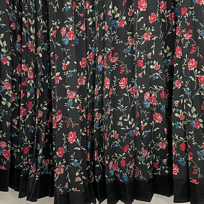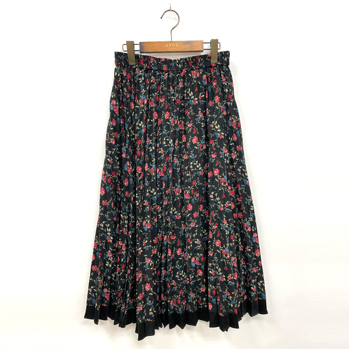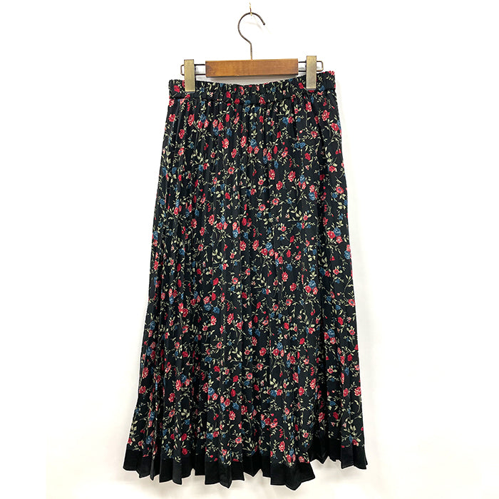 細かいプリーツが入ったロング丈のスカートです。ヴィンテージ感あふれる小花柄の配色が、秋の季節を感じさせる一枚です。