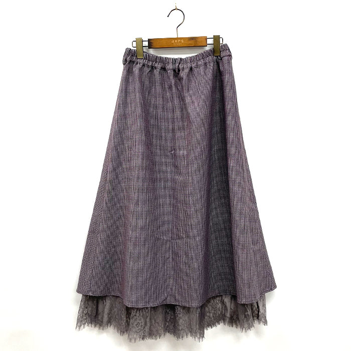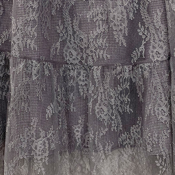 千鳥格子の柄が映えるシンプルなデザインと、総レースの華やかなデザインの両方が楽しめる、リバーシブルのロングスカートです。ニットを合わせてカジュアルに、ブラウスを合わせてフェミニンな着こなしにも。ウエストが総ゴムで履きやすいのも嬉しいポイントです。