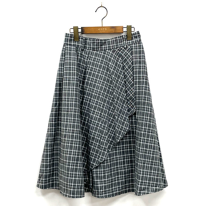 カジュアルなチェック柄が目をひくスカート。巻きスカートのような見た目でフリルデザインがフェミニンなポイント。グログランリボンのウエストリボンは取り外し可能でお好みのベルトをしても◎。