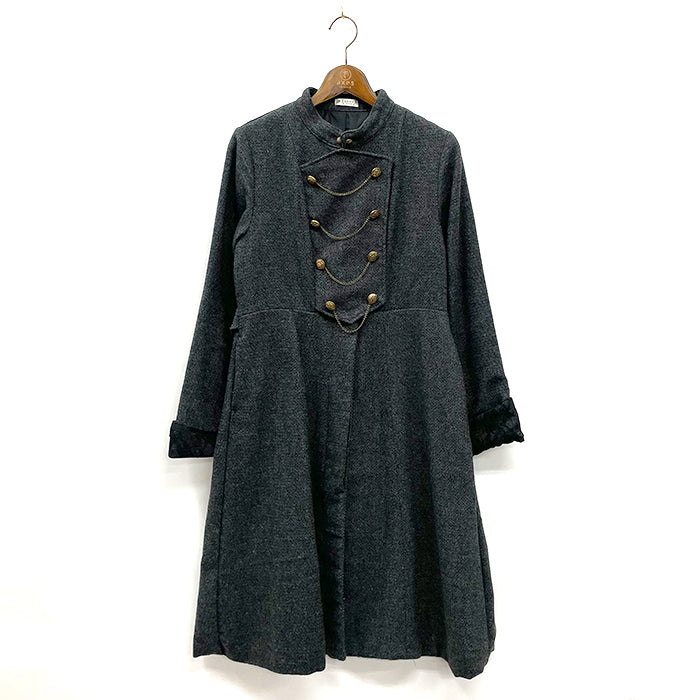アンティーク調のボタンとチェーン使いがポイントのナポレオンデザインのロングコートです。