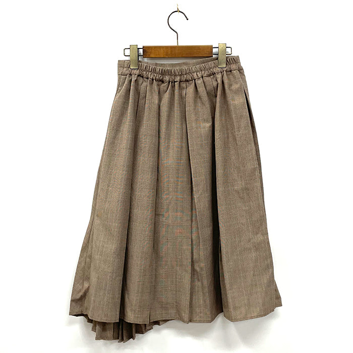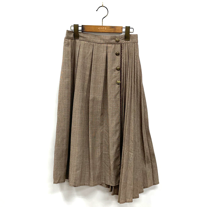 ボックスプリーツ×アコーディオンプリーツがデザインポイントのスカート。イレギュラーヘムでゆれるシルエットも可愛いアイテム。連釦でクラシカル感も◎。
