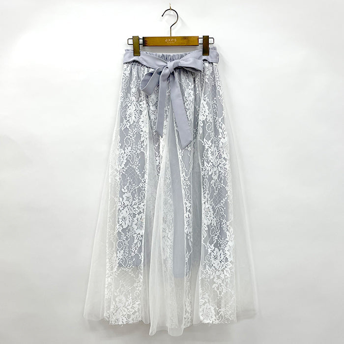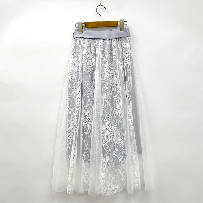 春先までお使いいただけるフェミニンなロング丈のスカートです。裏地が透けるレースデザインはエレガントなコーデにおすすめ。ブラウスはもちろんニットやチュニックとあわせてルーズなコーデにしあげるのも◎。