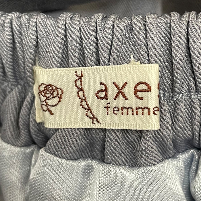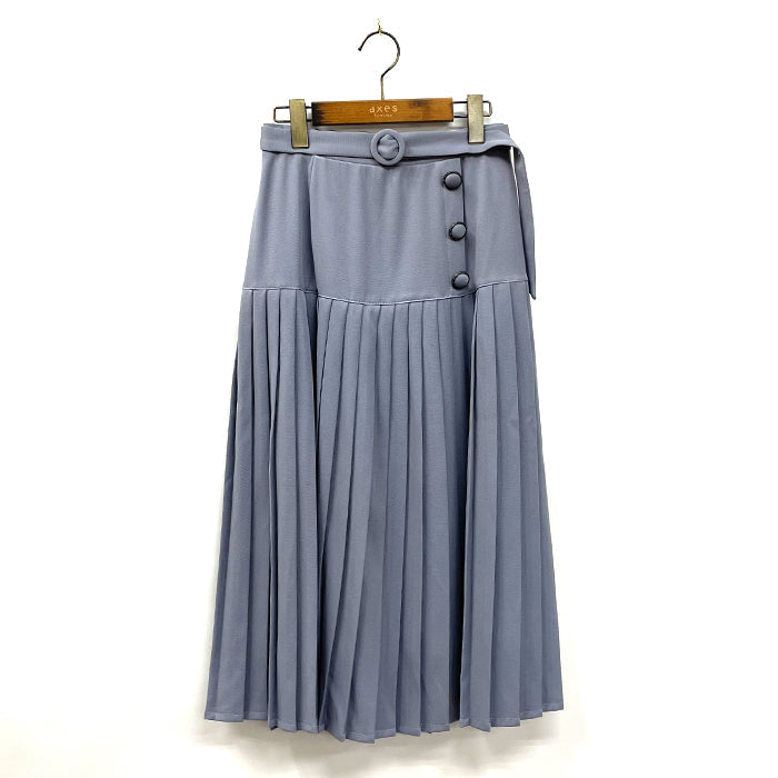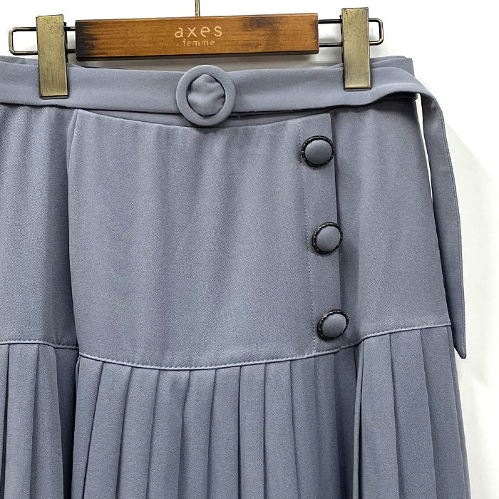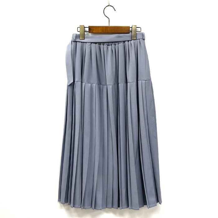 ヒップラインより下は細めのプリーツデザイン、広がりすぎない落ち感のあるシルエットで大人っぽい印象に仕上がります。後ろはゴムで着やすさも◎