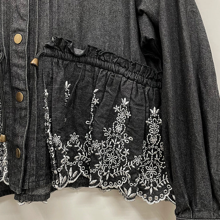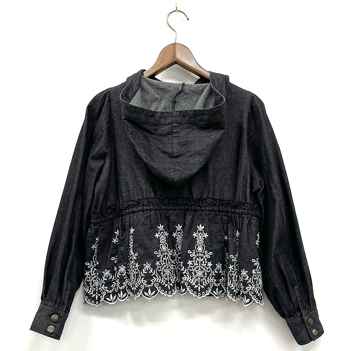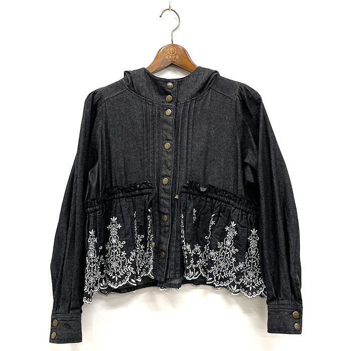 レースをイメージしたスカラップ刺繍を裾に施したガーリーミックスなブルゾンです。