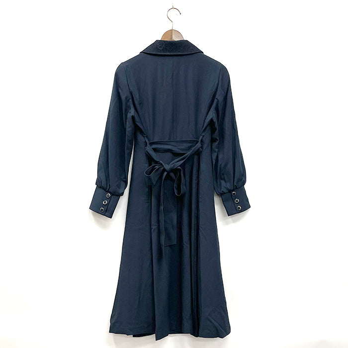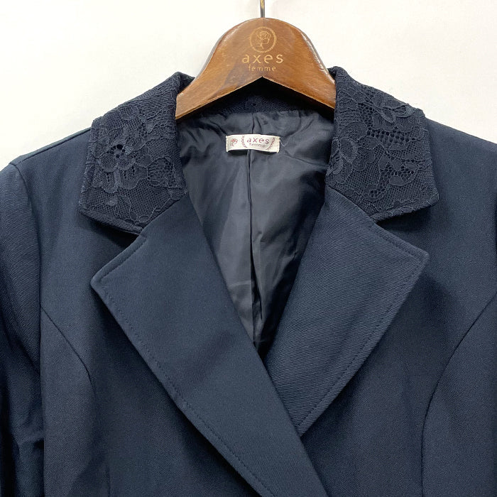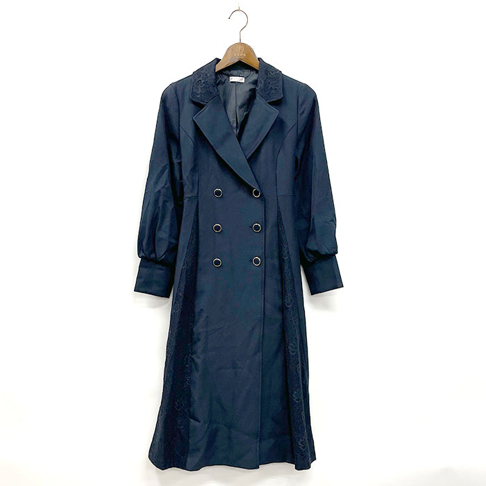 大人っぽい雰囲気を演出するダブルブレストロングコートです。マチ部分はレースで切替になっていて華やかで女性らしいシルエットが綺麗なコートです。