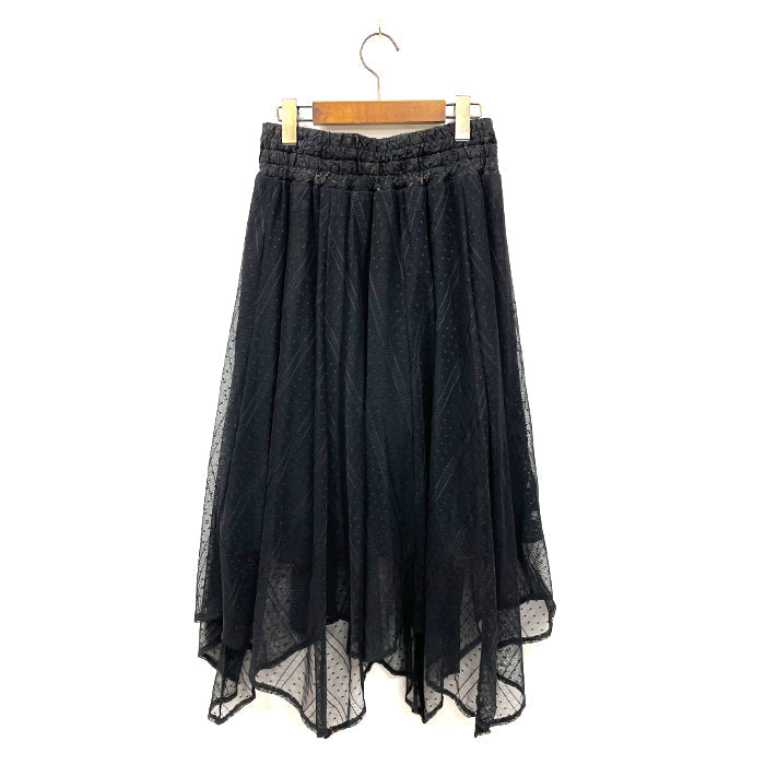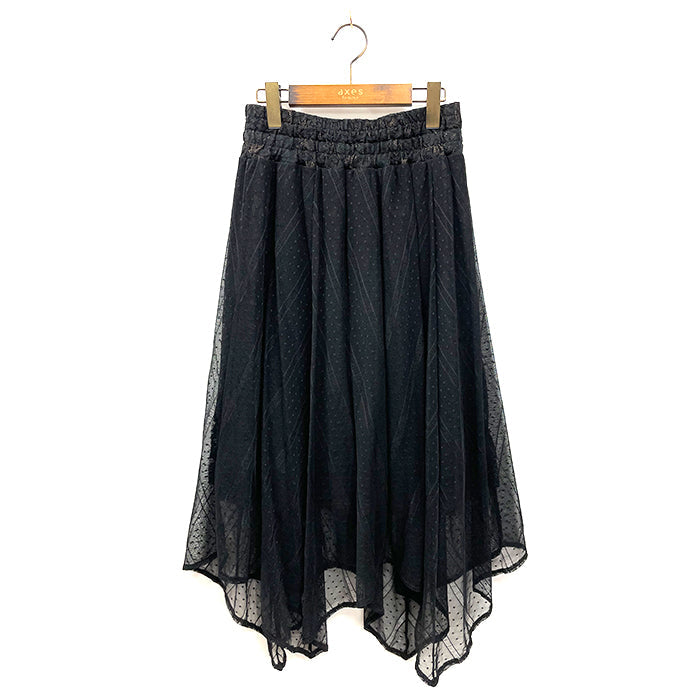レースを重ねたデザインが華やかなスカート。イレヘムデザインでゆれるシルエットが繊細でフェミニンな印象を与えてくれます。ウエストはシャーリングゴムで着やすさ◎。トップスをインしてベルト合わせでエレガントな印象に、ゆったりトップスをアウトで重ねた着こなしもトレンド感がでておすすめです。