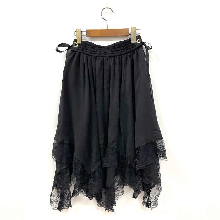 裾に繊細なレースをあしらったイレヘムスカートです。