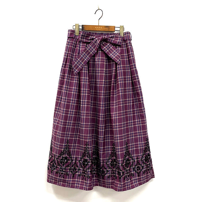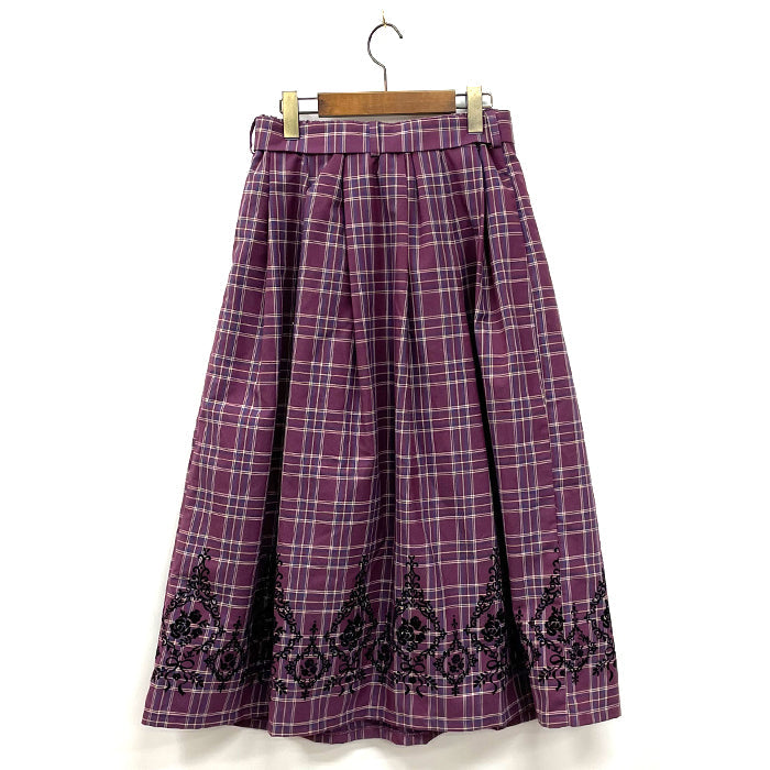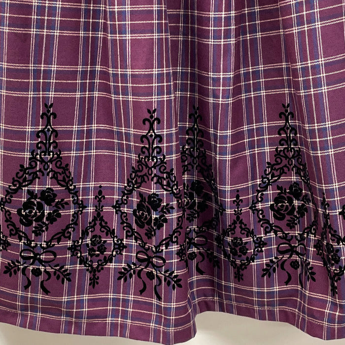 裾に施されたオーナメント×バラのフロッキープリントがポイントのチェックスカートです。